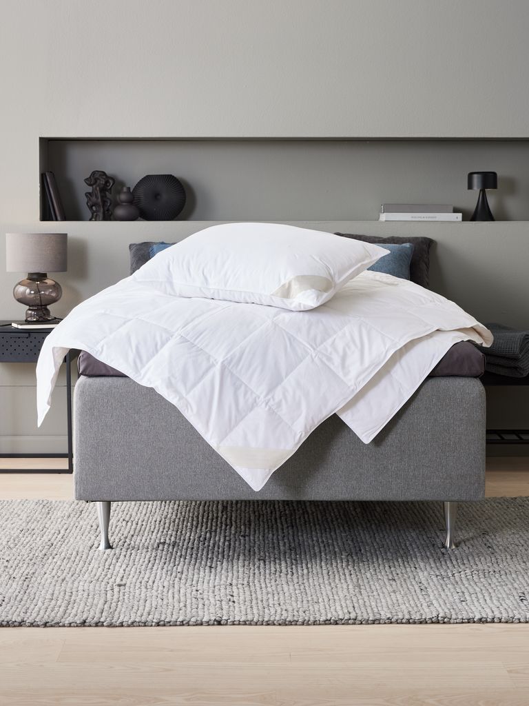 | Imbottitura | Canali esterni - natuale: 50% piumino d'anatra bianca/50% piume d'anatra bianca. Canali esterni - peso: 2x75 g. Canali interni - naturale: 100% piume d'anatra bianca. Canali interni - peso: 550 g |