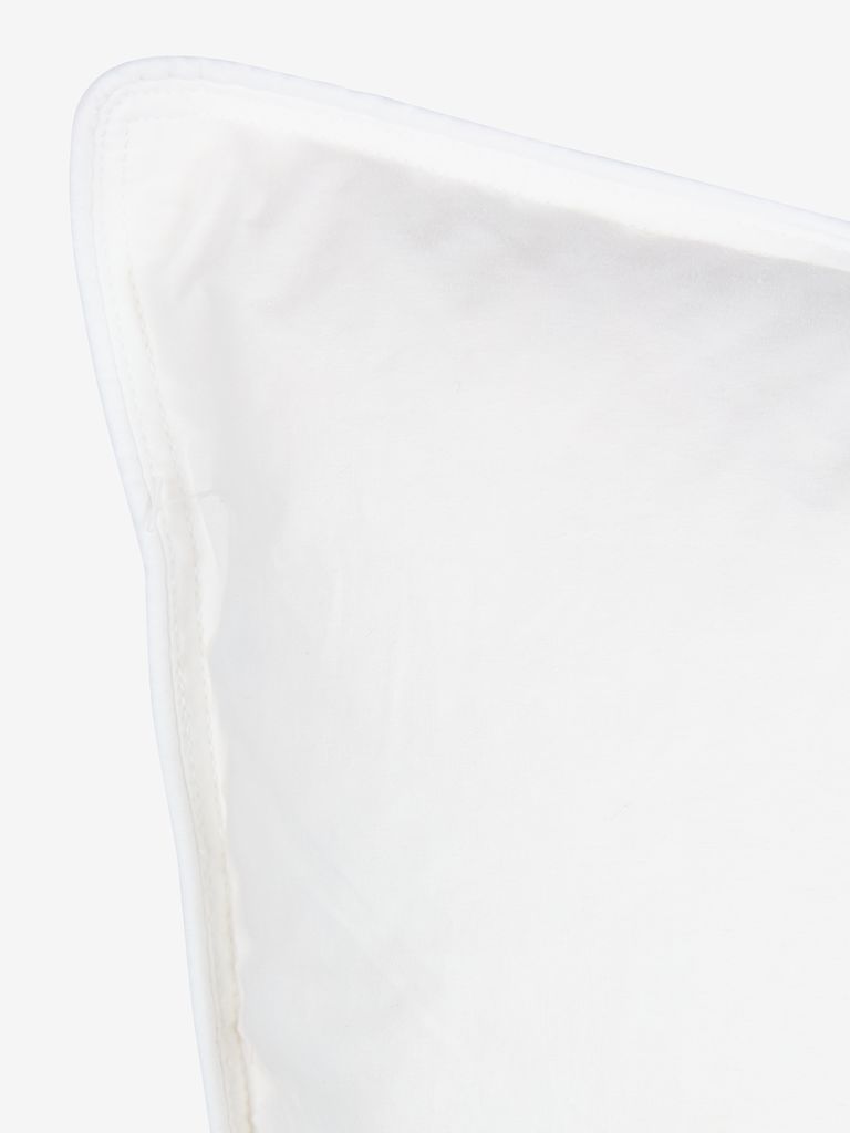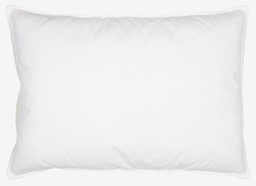 Guanciale in piumino d'anatra 50x70 cm con 3 camere. Imbottitura in 50% piumino d'anatra bianca/50% piume d'anatra nelle camere esterne e 100% piume d'anatra nella camera interna, 700 g. Fodera in 100% cotone. Filling power 125/300. Lavare a 60°C.