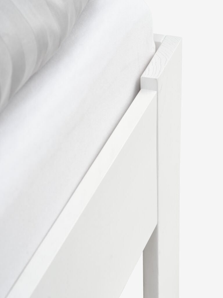 Dit bed besteld voor onze dochter. Super degelijk, stevig en goed bed! Massief grenen en vuren hout. Geen honingraad/karton gevulde delen zoals bij de ikea. Toleranties en maatvoering is ook dik in orde. Alleen 2 voorgeboorde gaatjes voor 2 schroeven om een metalen trekstrip te bevestigen zaten niet helemaal op de juiste plek maar die kon je zo op een andere plek vast schroeven. De lattebbodem die we besteld hebben waren de kopse kanten/latten niet goed voorgeboord. Je kon met lange schroeven deze latten vast draaien maar niet goed vast. Ze werden weer losser/dol en leken niet helemaal goed te pakken. Lijkt een productie foutje te zijn. Maar overall is het bedframe super stevig, mooi en minimalistisch (neemt niet veel ruimte in). Mooi bed!