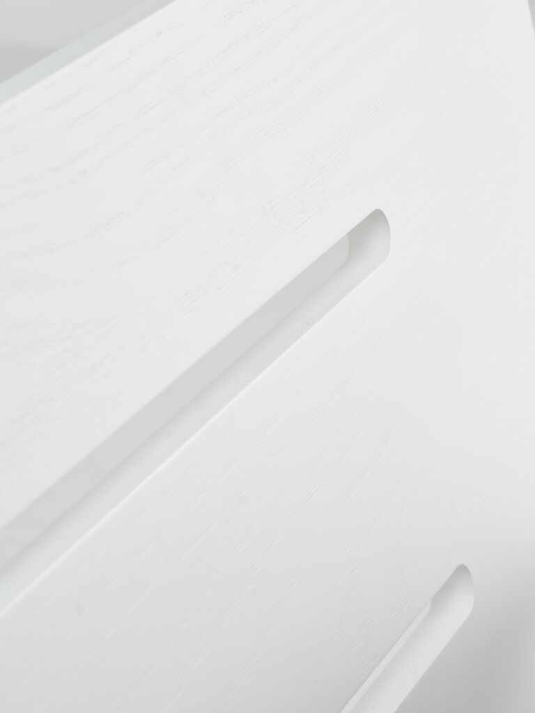 | Lato letto | Materiale: L'impiallacciatura in legno viene ottenuta da strati sottili di legno massello incollati a un pannello truciolare o in MDF. Dona un aspetto di legno massello naturale. |