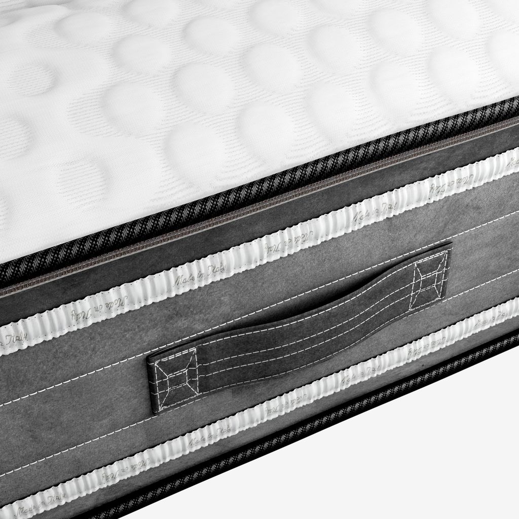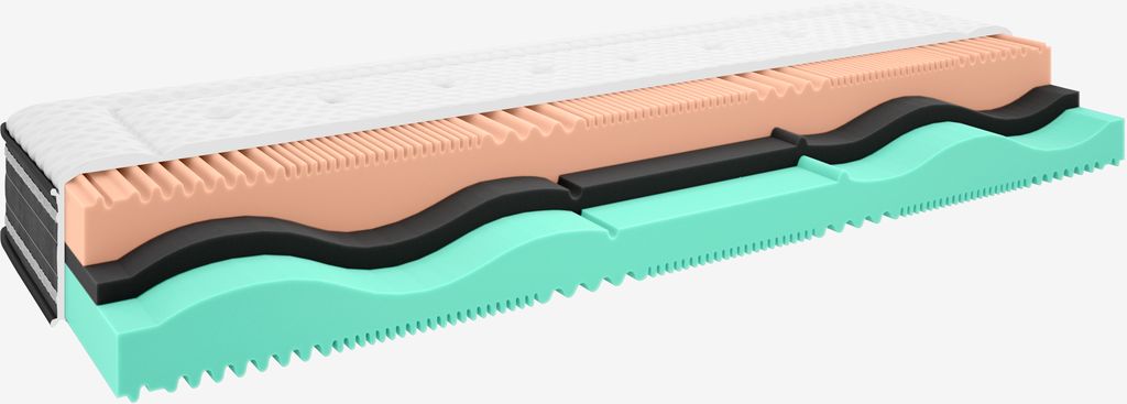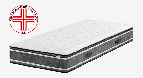 Materasso in schiuma 90x200 cm alto 26 cm con 2 diversi livelli di rigidità e anima di 20 cm in schiuma di polietere. Il materasso presenta la marcatura CE ed è riconosciuto come dispositivo medico secondo MDR 745/2017. Fodera lavabile elasticizzata con trapuntatura spessa in memory foam da un lato e microcapsule che regolano la temperatura corporea e contribuiscono a creare un ambiente del sonno fresco e asciutto.