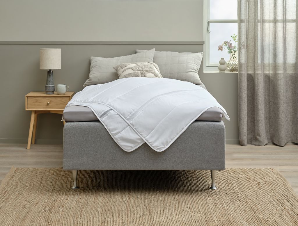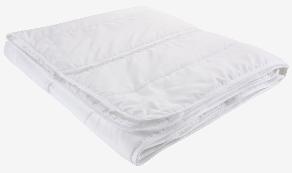 Imbottitura in fibra di poliestere, 530 g. Fodera in 100% poliestere con canali di ventilazione. Lavabile a 40°C. 240x220 cm