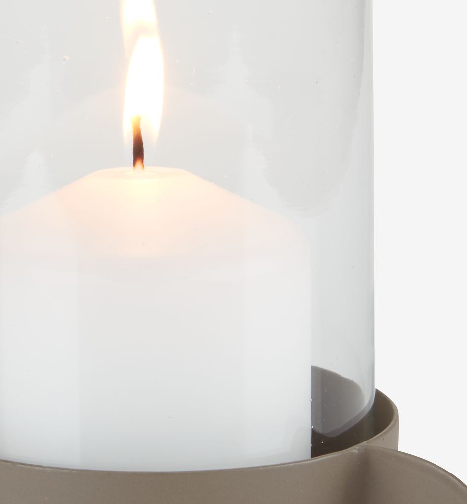 Piccola lanterna in vetro con base in acciaio verniciato a polvere, disponibile in vari colori. La lanterna è adatta a candele a colonna e crea un bagliore caldo e invitante. Ideale per essere posizionata sul tavolo da giardino o da salotto per creare un'atmosfera accogliente. Ø10 x H16 cm