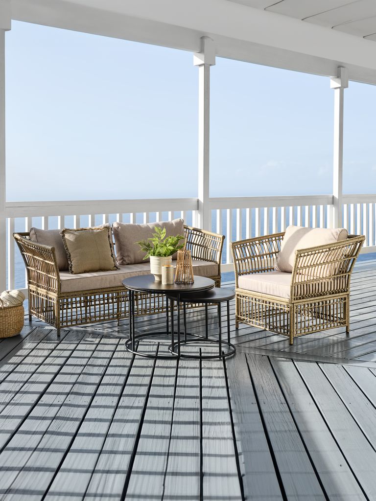 Fin soffa fast kuddarna är väldigt hårda att sitta på/ryggkuddarna tjocka. Lätt att sätta ihop om man är två. Vet inte om det beror på soffan eller vår veranda men soffan lutar lite snett framåt/ner åt så att man glider ner åt en aning. Är nöjd ändå.