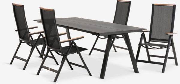 FAUSING + BREDSTENTavolo FAUSING L220 cm + 4 Sedie BREDSTEN nero