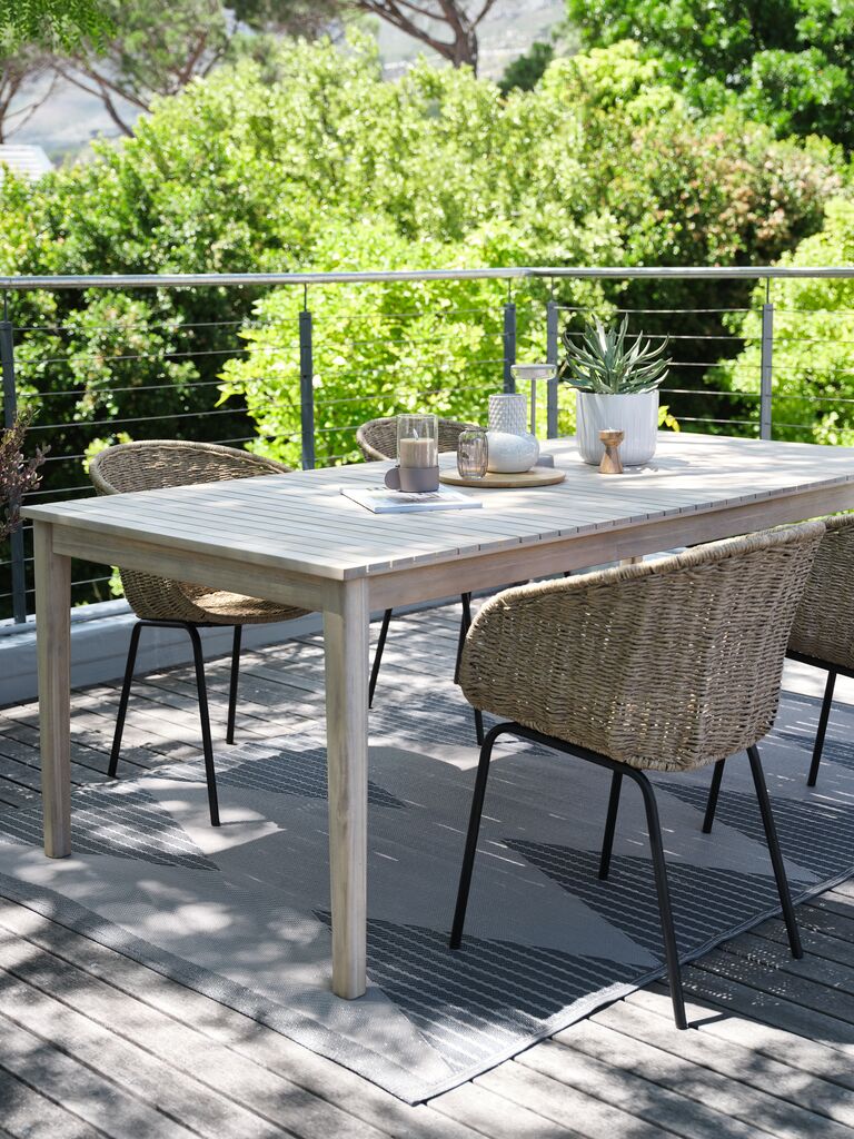 | Materiale | Struttura: Legno di acacia massello, Piano del tavolo: Legno di acacia massello, Gambe: Legno di acacia massello |