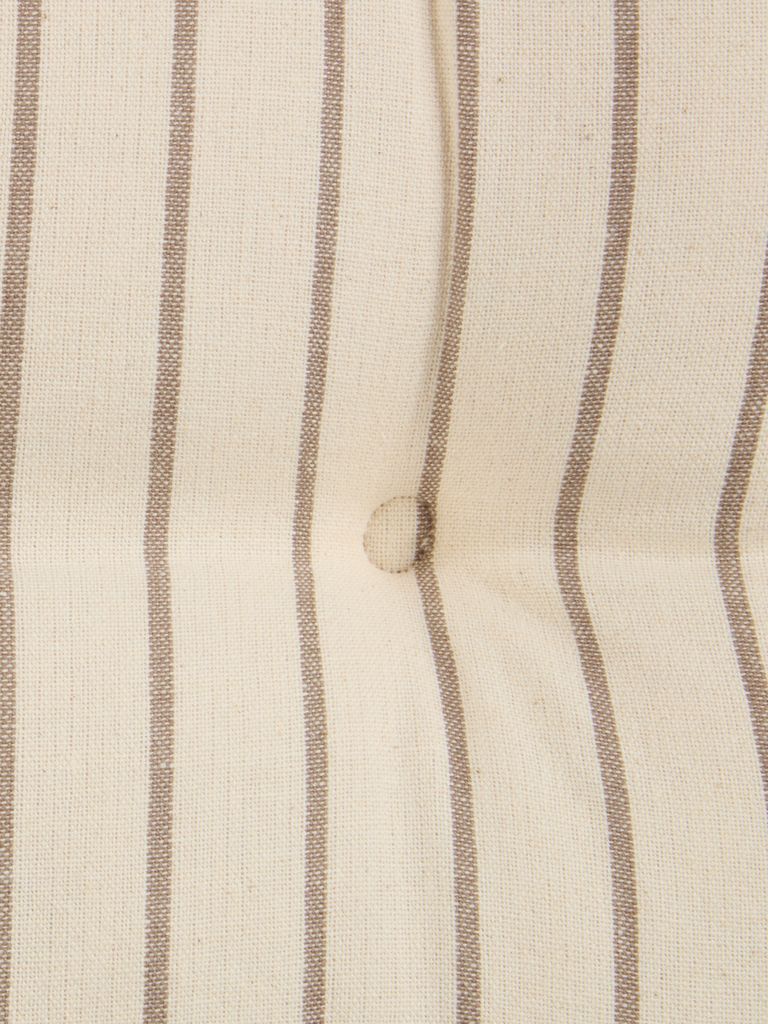 Schicke Kissen in ausgezeichneter Qualität. Kissen bleiben auch ohne Bänder auf unseren unlackierten Stühlen liegen.