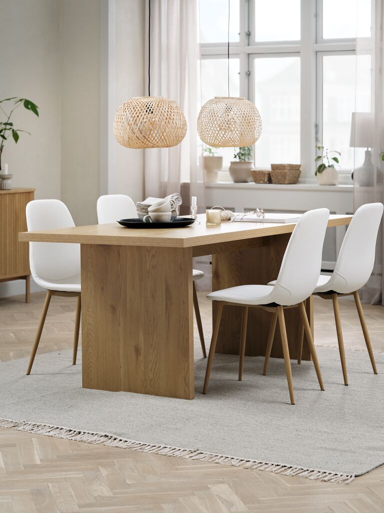 MUNKEBY Tavolo L180 rovere caldo + 4 JONSTRUP Sedie bianco