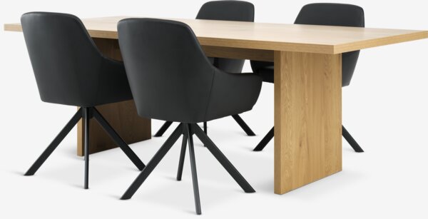 MUNKEBY Tavolo L220 cm rovere caldo + 4 ROSTRUP Sedie nero